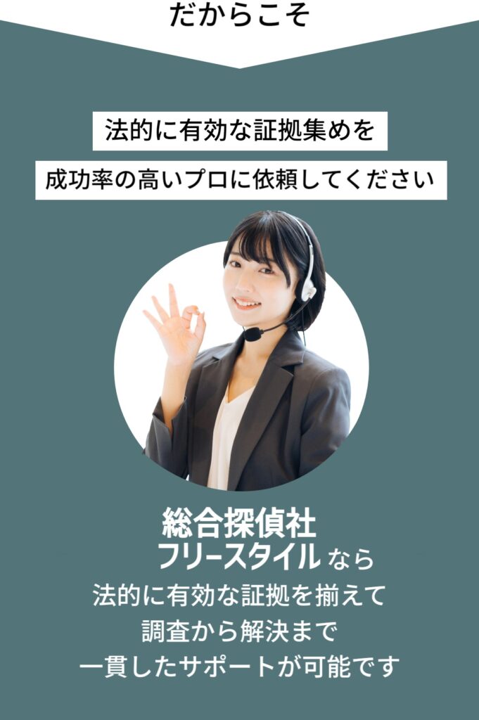 名古屋市や愛知県周辺での浮気調査のご相談なら確実な調査で証拠を押さえる調査部と法務部によるアフターフォローが1つの探偵事務所でご利用いただける探偵事務所フリースタイルにお任せください。