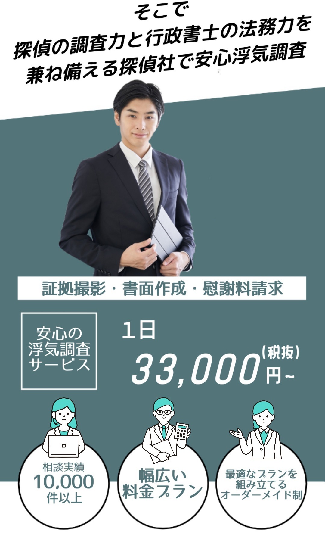 その為、探偵業者にありがちな「見積もりでは安かったのに調査後の請求額が全然違った」という心配がなく、安心してご利用いただけます。
