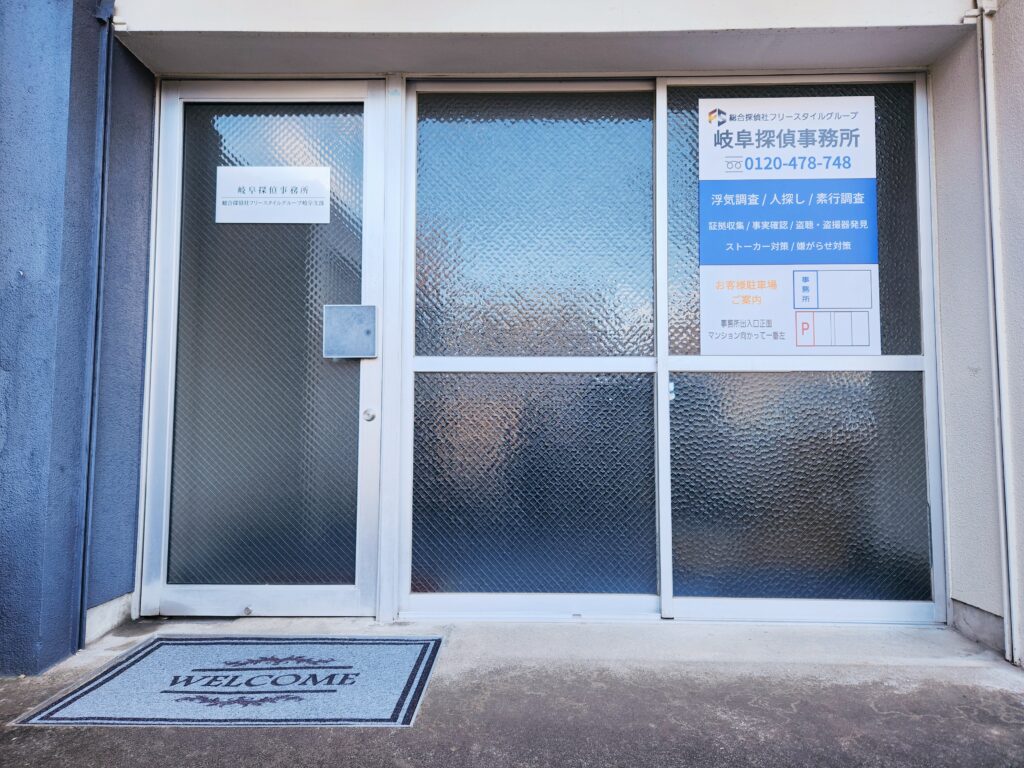 総合探偵社フリースタイル岐阜支部である岐阜探偵事務所の外観と概要です。